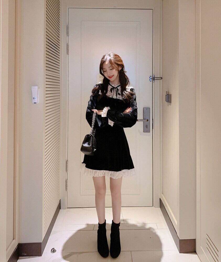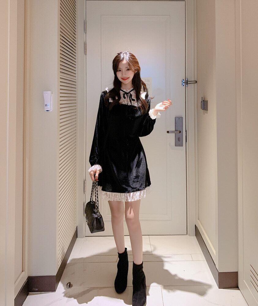 送料無料୨♥୧ オータムスプリングレディースブラックミニドレス ゴシックパンクスタイルカラーリボンベルベットクリスマスレースフリルパーティー AOS53143745265
