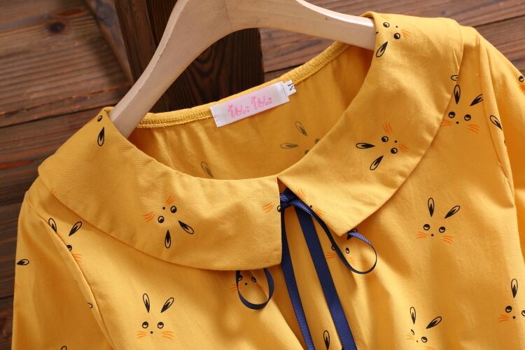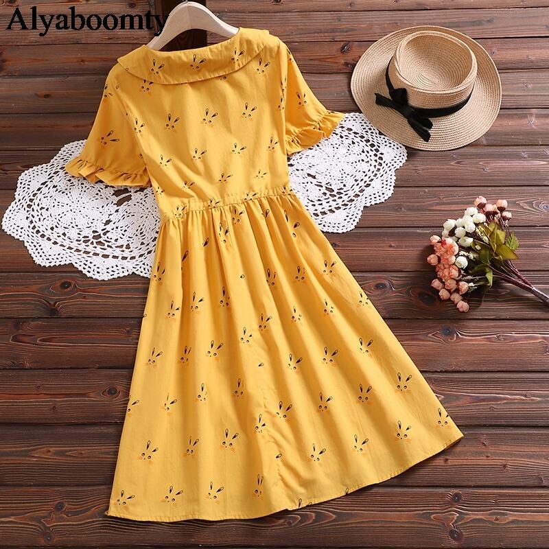 送料無料୨♥୧ プレッピースタイルサマーレディース可愛いドレス ピーターパンカラーピンクイエローバニーリボン半袖スリーブの AOS16175391249