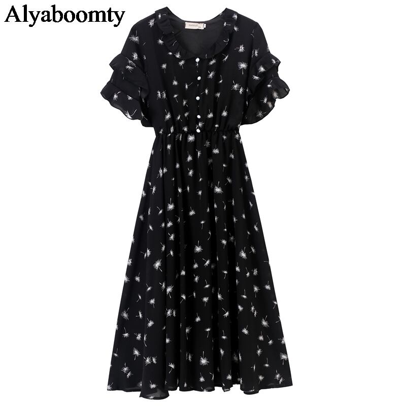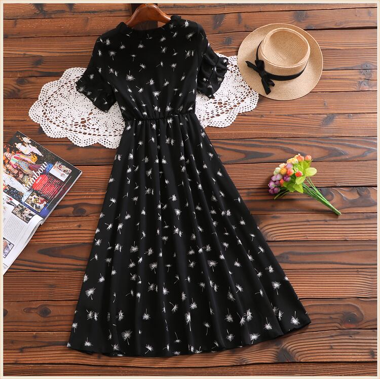 送料無料୨♥୧ サマーレディース甘いロングロマンチックドレス カラーホワイトブラックフローラルプリント半袖スリーブシックシフォンドレス ワンピース AOS61273221313