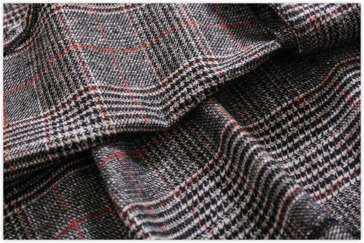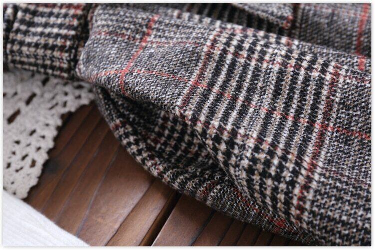 送料無料୨♥୧ イングランドスタイルウィンターレディースウールドレス Vネックヴィンテージ格子柄サッシロングノースリーブシャツ 森 AOS40752869207