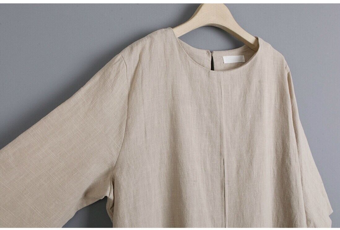 送料無料୨♥୧ 2021サマースタイルレディースoバギーミディドレス 首ソリッド ルーズ特大コットンスプリットと AOS58831236227