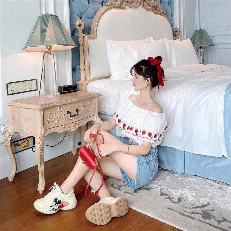 送料無料୨♥୧ 2021オルチャンサマーレディース収穫トップス スラッシュ首ホワイト刺繍イチゴレディブラウス 可愛い甘いショートブルサ AOS45687603712