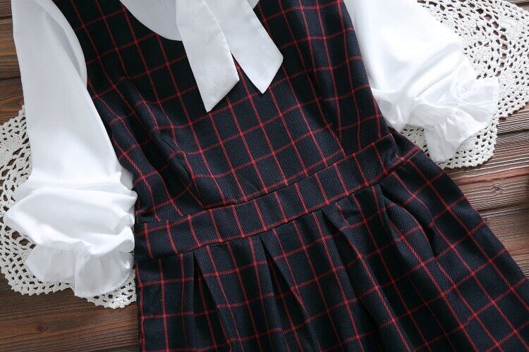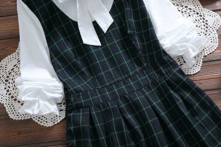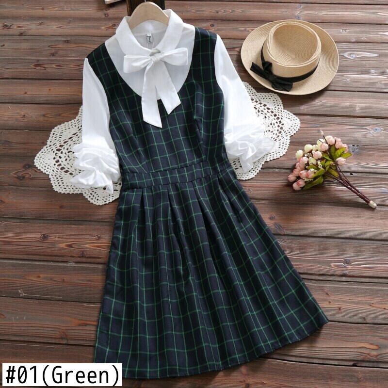 送料無料୨♥୧ eseプレッピースタイルスプリングレディースミニドレス パッチワークレッドグリーン格子柄リボン可愛いの AOS2559363658