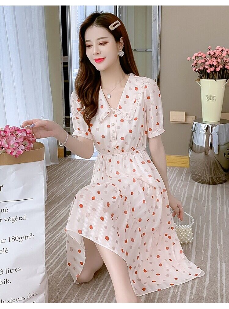 送料無料୨♥୧ 2021サマーレディースシフォンAラインドレス 断るカラー水玉甘いフリル AOS80462240302