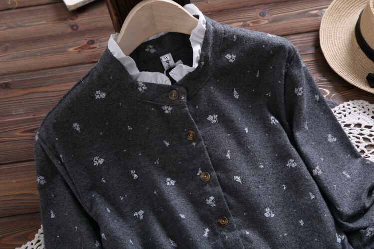送料無料୨♥୧ 2021森スプリングオータムレディース新鮮なドレス カラーフローラルプリント柄グレーネイビーブルーvestido長袖スリーブ可愛い AOS35491381848