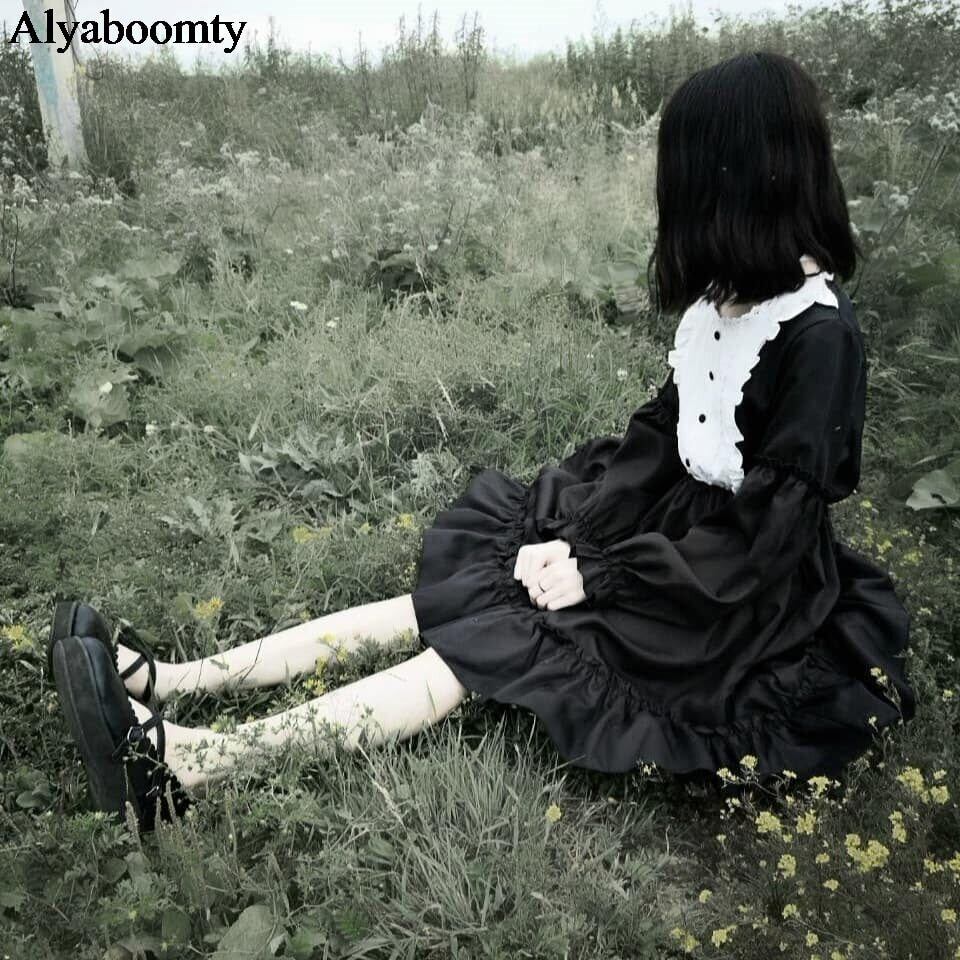送料無料୨♥୧ eseスプリングレディースブラックブルーパーティードレス 可愛い甘いパッチワークコスプレフリルロリータスタイル AOS94865412626