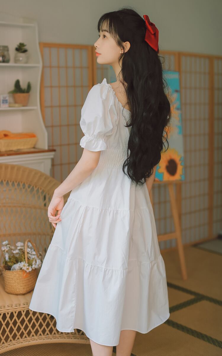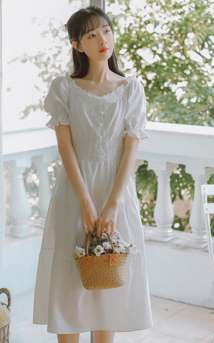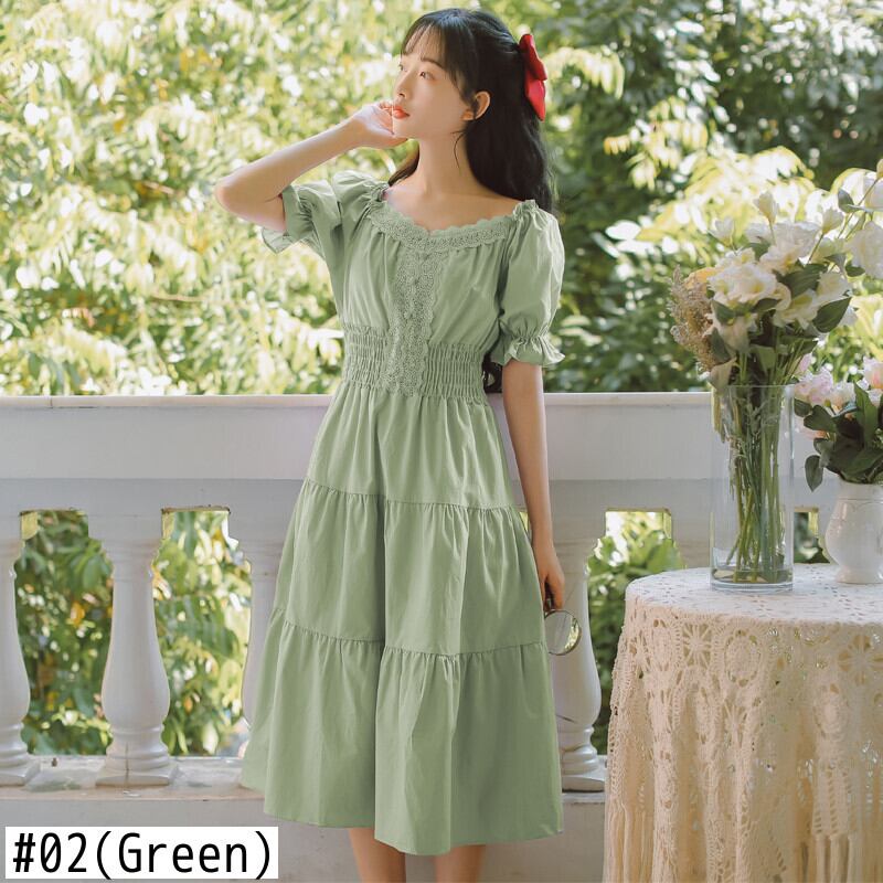 送料無料୨♥୧ 2021森サマーレディース甘いコットンドレス アプリコットグリーンホワイト紫のレースパッチワークシックミディフリル AOS29123389230