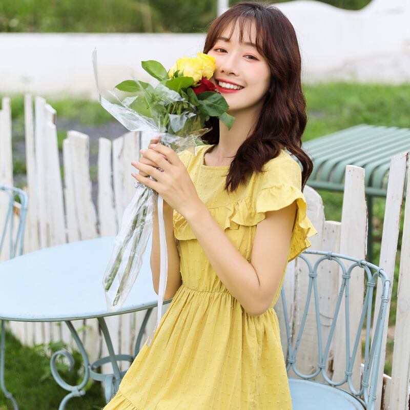 送料無料୨♥୧ 2021森サマーレディースイエローミディドレス シックフリルパーティー甘いドレス ワンピース AOS9605997545