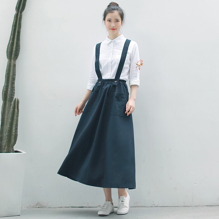 送料無料୨♥୧ 2021森レディース可愛いミディスカート ウェストヴィンテージプレッピースタイルコットンロング AOS80997646385
