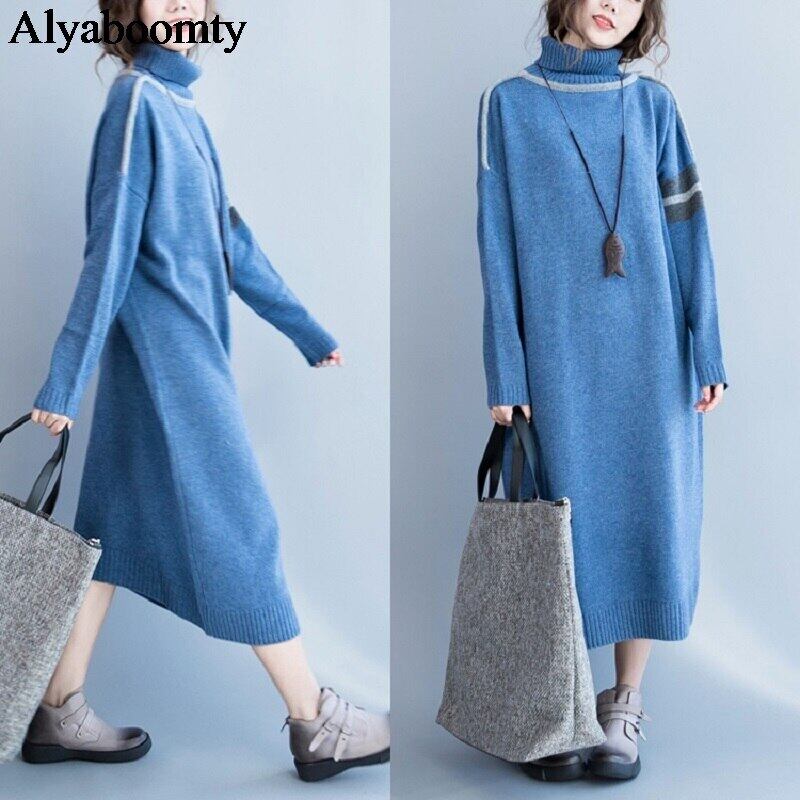 送料無料୨♥୧ 2021オータムウィンターレディースプラスサイズドレス タートルネックブルーニットベスティドス厚くするルーズセーター AOS60527207962