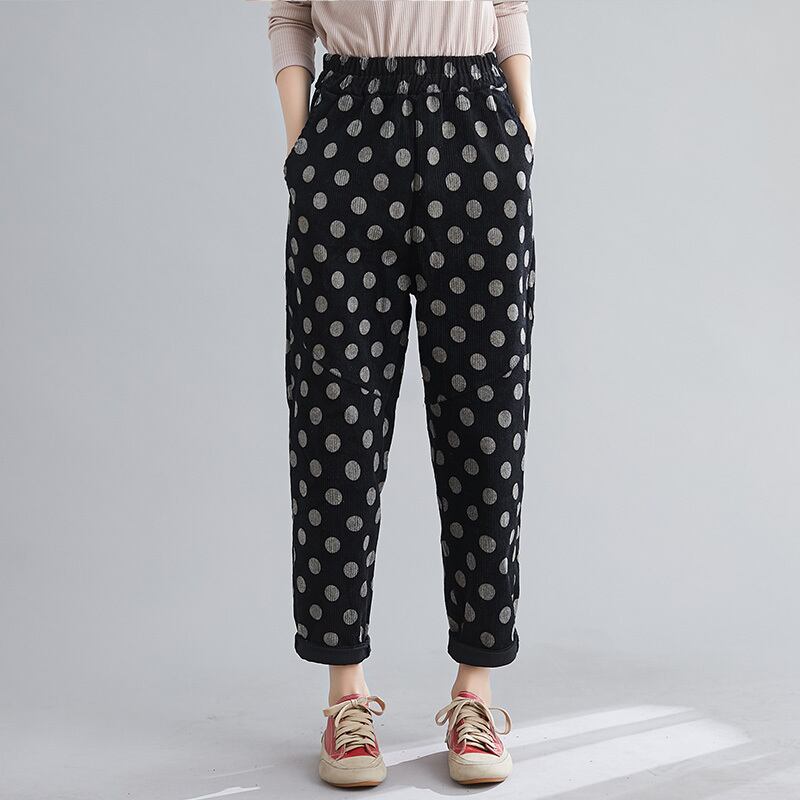 送料無料୨♥୧ オータムウィンターレディースルーズズボンウェストブラウンブラック水玉コーデュオリーパンツ ヴィンテージハーレムと AOS85280531283