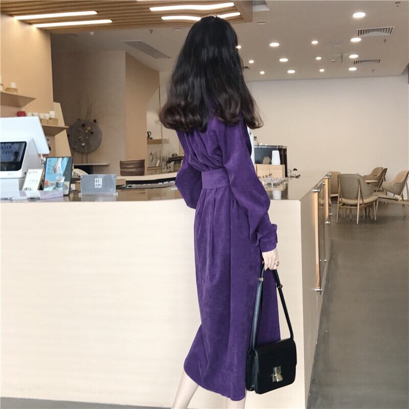 送料無料୨♥୧ オータムウィンターレディースロングドレス 断るカラー紫のカーキ特大ベスティドスヴィンテージコーデュロイシック AOS57994169048