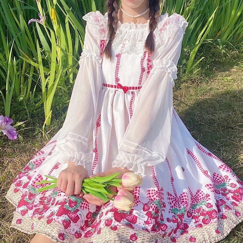 送料無料୨♥୧ 2021スプリングサマーレディース可愛い収穫トップス カラーとレースフリルホワイトブラウス ランタンスリーブロリータ AOS45552882016