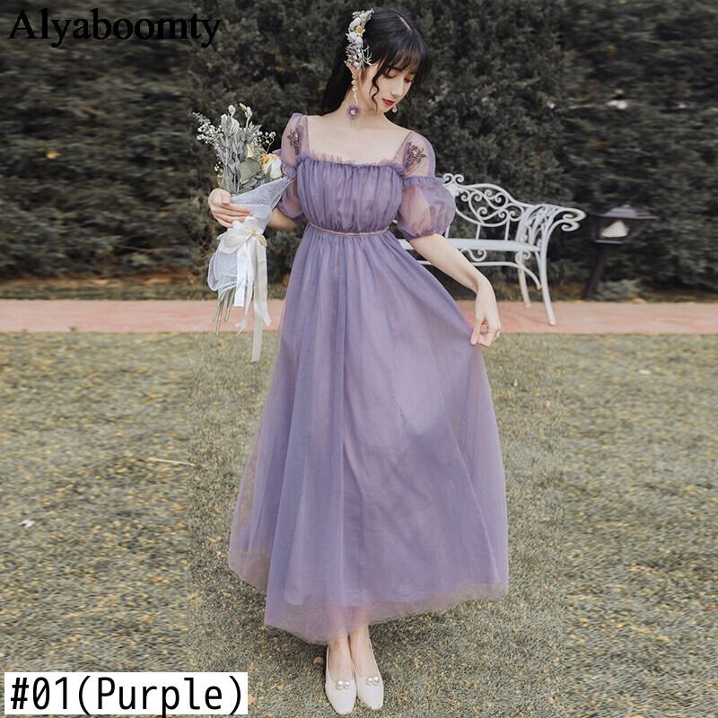 送料無料୨♥୧ サマーレディースマキシロングロマンチックドレス スラッシュ首ウェストスリムメッシュパーティー紫のチュールと刺繍 AOS56682315181