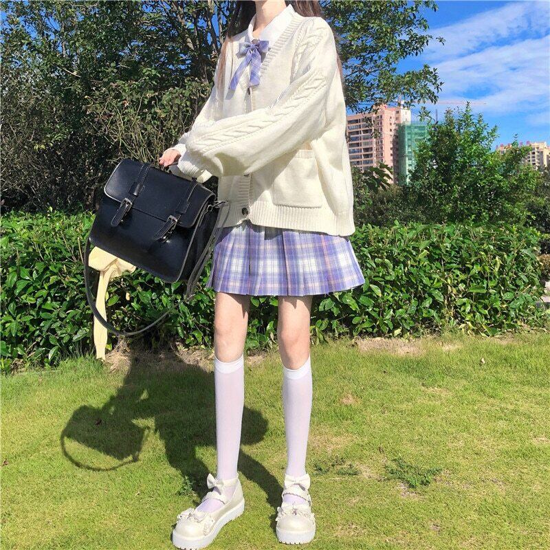 送料無料୨♥୧ ese森オータムウィンターニットアウターVネックホワイトイエロー特大カーディガン可愛い甘いセーター AOS70581107994
