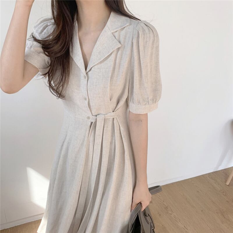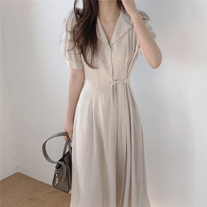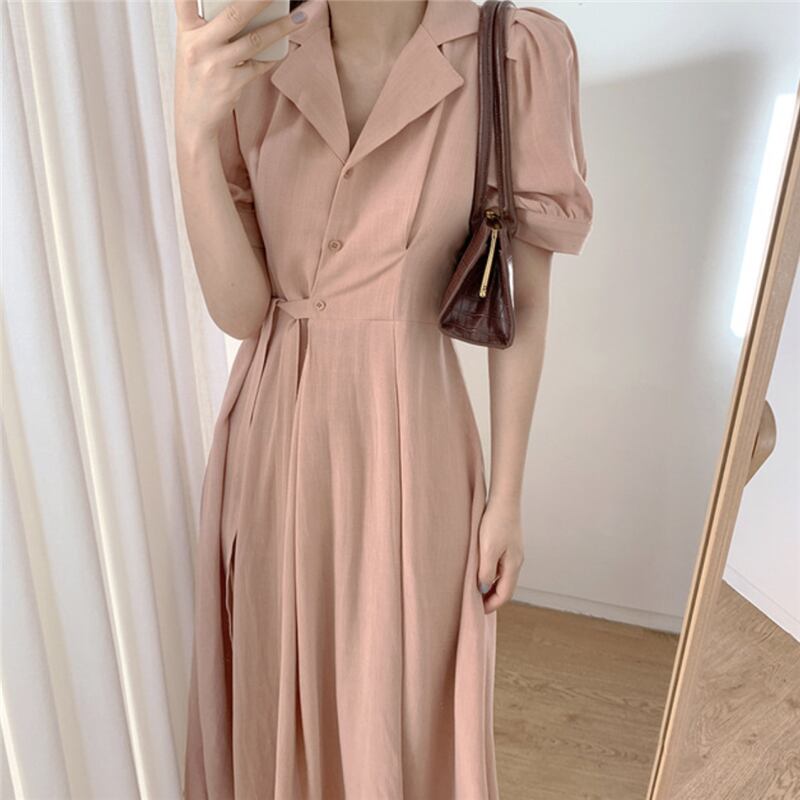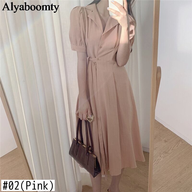 送料無料୨♥୧ 2021サマースタイルレディースミディドレス 断るカラーアプリコットピンクレースアップベスティドスコットンシャツ AOS37486424182
