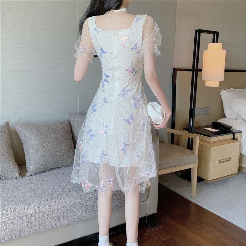送料無料୨♥୧ 2021サマーレディースロマンチック妖精メッシュドレス 平方カラーButterflyデザイン パーティーシックとチョーカー AOS3371749928