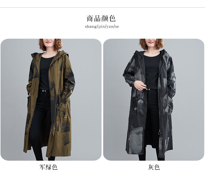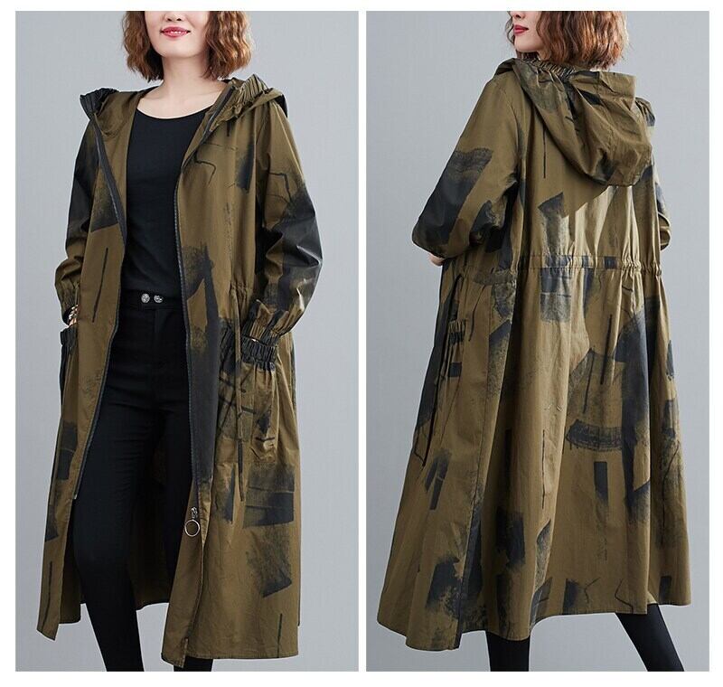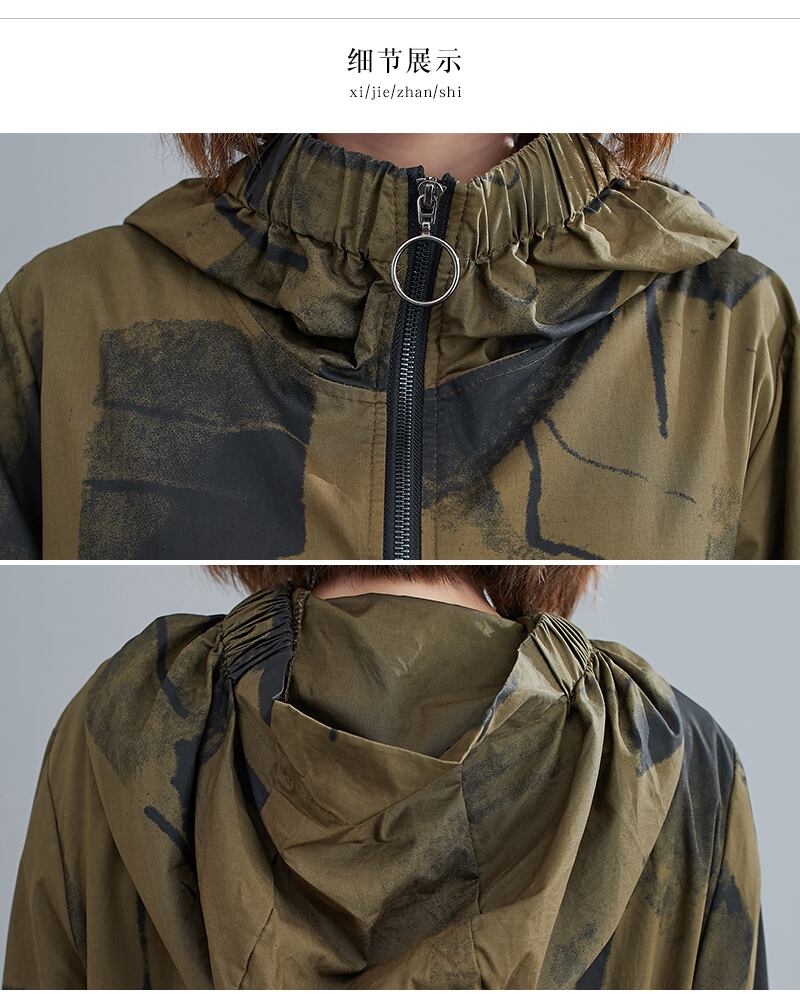 送料無料୨♥୧ スプリングオータムプラスサイズレディースフードヴィンテージプリント柄ブラックグリーンアウタールーズ特大ジッパーカーディガン AOS87813205429