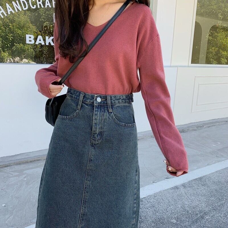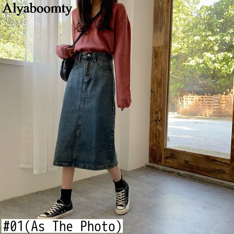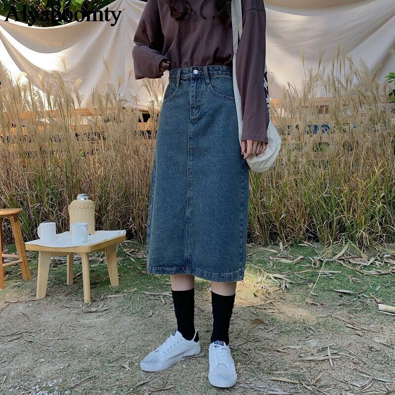 送料無料୨♥୧ 2021スタイルオータムウィンターレディースミディスカート ウェストヴィンテージ洗浄済みコットンジュープデニムスプリット AOS30664632158