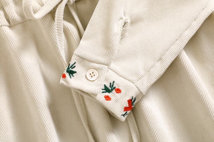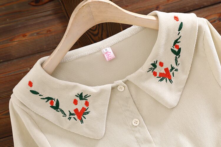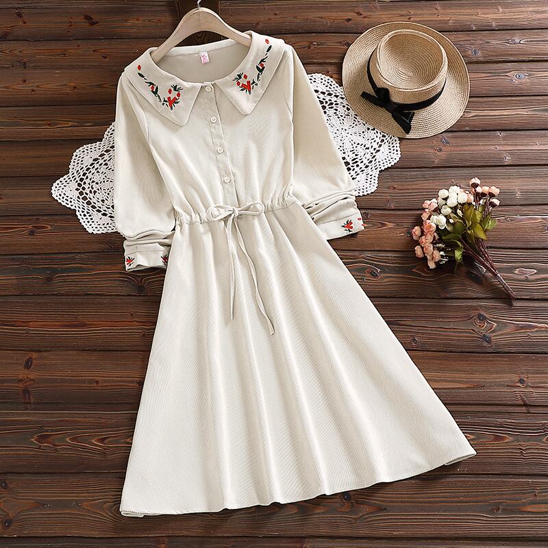 送料無料୨♥୧ オータムレディース甘いドレス ピーターパンカラーフローラル刺繍アプリコットAライン可愛いルーズコーデュロイドレス ワンピース AOS92740203245