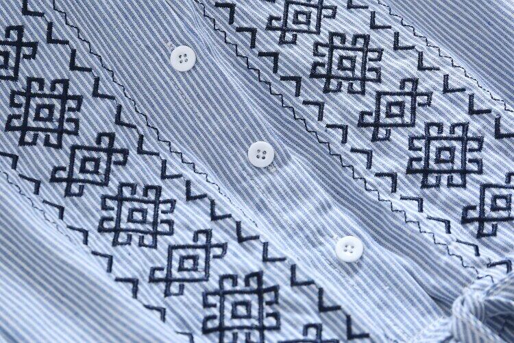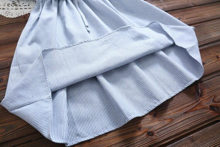 送料無料୨♥୧ 森スプリングオータムレディースヴィンテージドレス ピンクブルーストライプ刺繍服コットン AOS90290182085