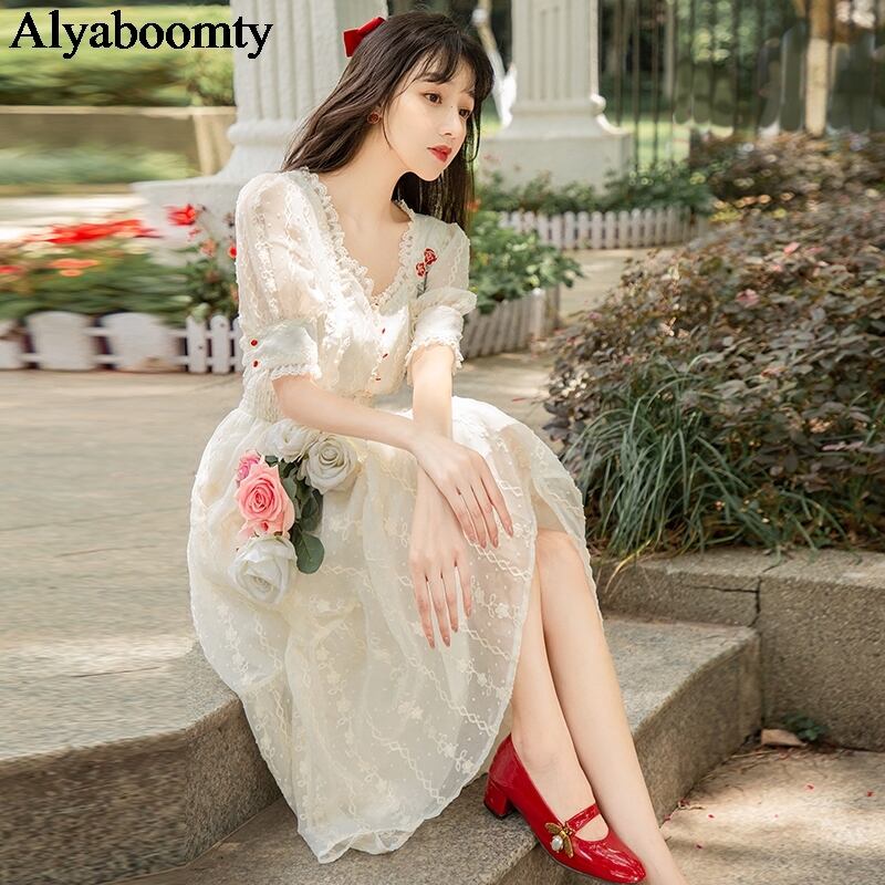 送料無料୨♥୧ サマーレディースロマンチック妖精ロングドレス 平方カラーローズ刺繍ボディコンベージュ甘い AOS77408755297