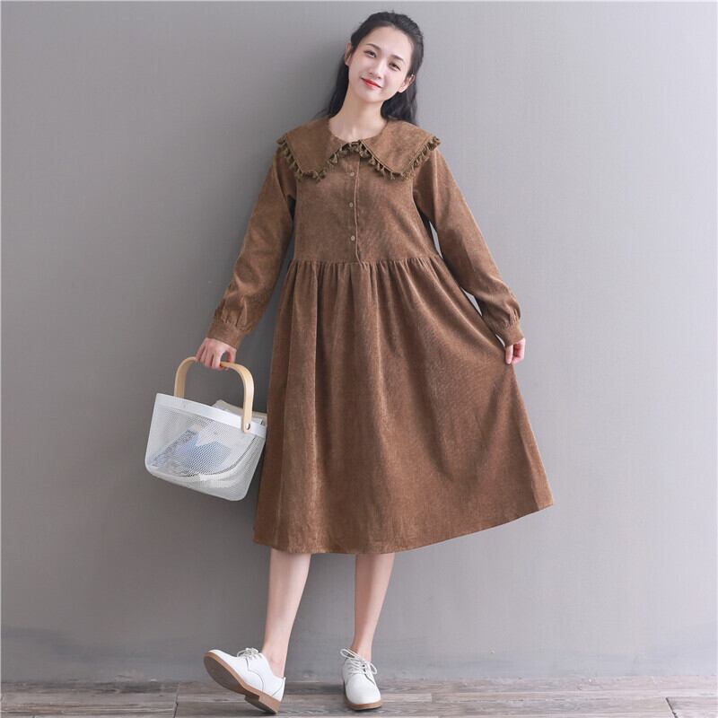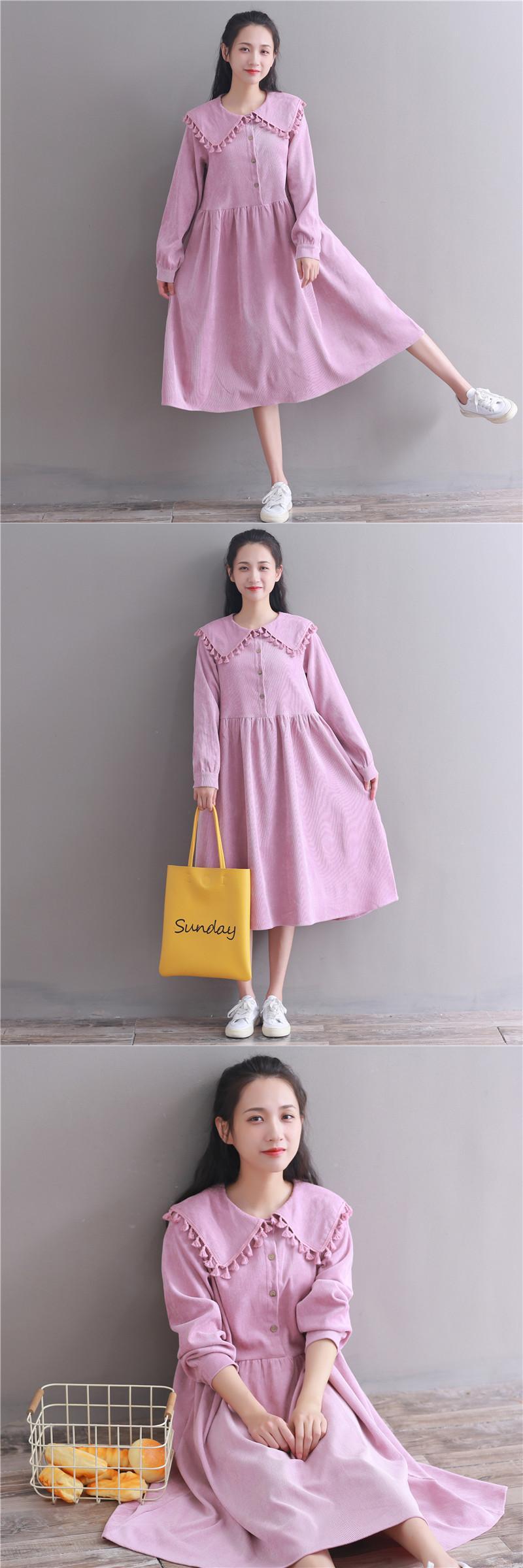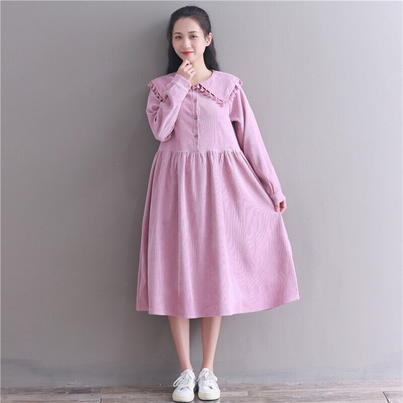 送料無料୨♥୧ ese森レディースコーデュロイロングドレス オータムウィンターピンクカーキルーズベスティドスでフェスタtelミディドレス ワンピース AOS11304809163