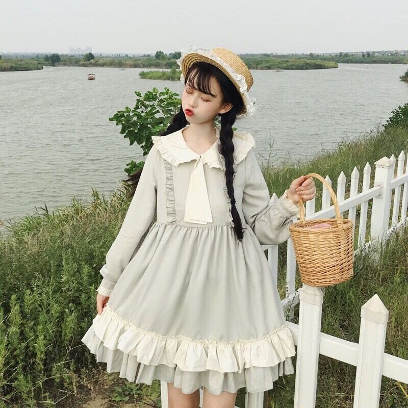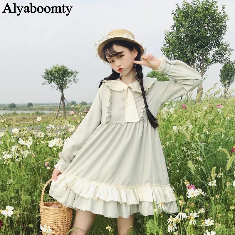 送料無料୨♥୧ eseスプリングオータムレディースミニドレス ピーターパンカラーバギーネクタイパーティー長袖スリーブフリル AOS65941813037