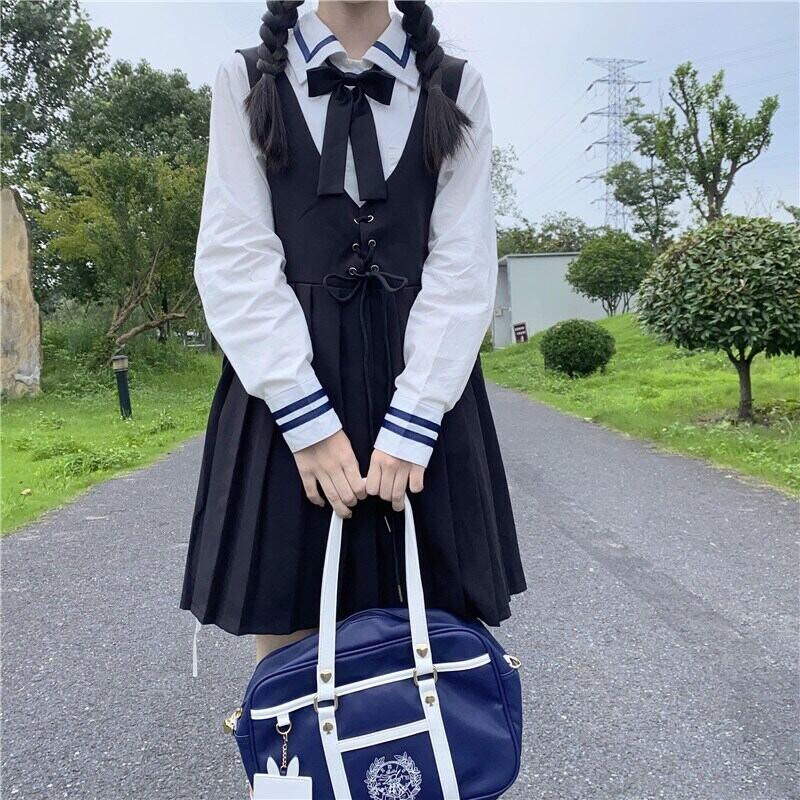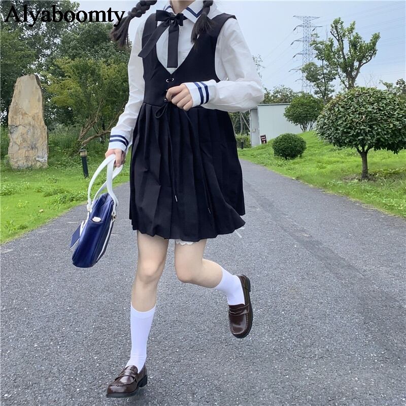 送料無料୨♥୧ ese原宿レディースブラックミニjkプリーツドレス Vネックバンドノースリーブ可愛いオータムスプリング AOS17611915375