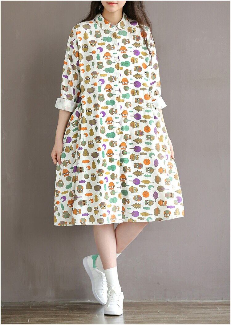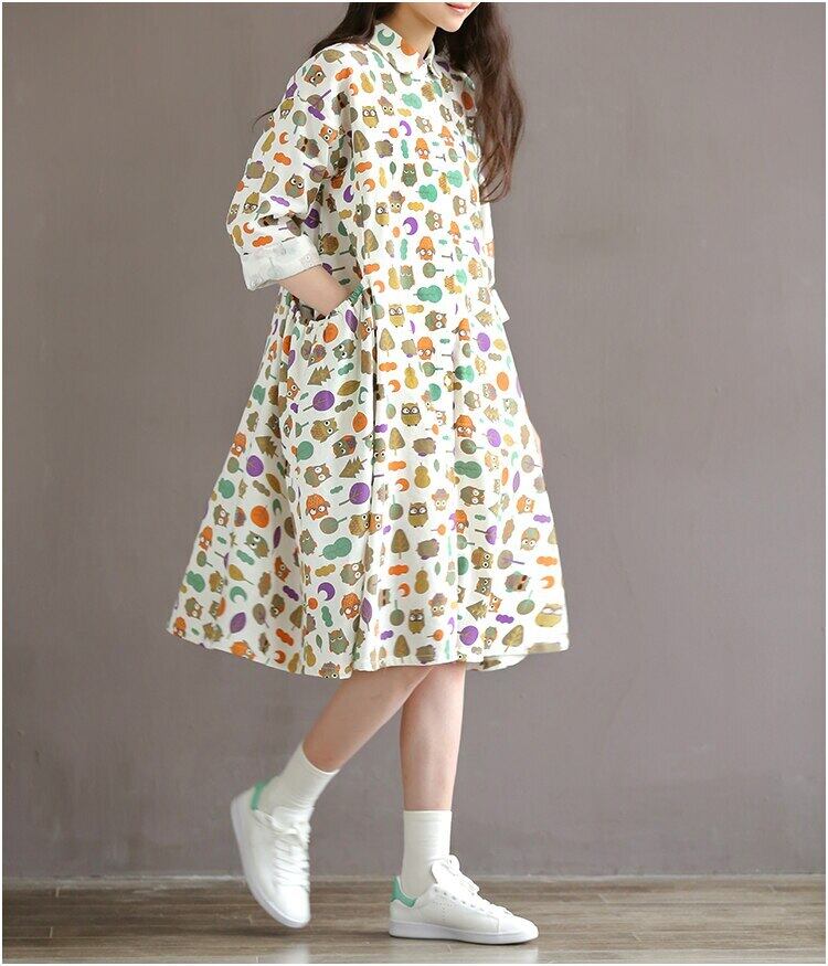 送料無料୨♥୧ ese森オータムスプリングレディースシャツ ドレス 断るカラープリント可愛いルーズコットンドレス ワンピース AOS61284213429