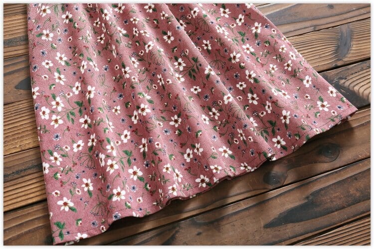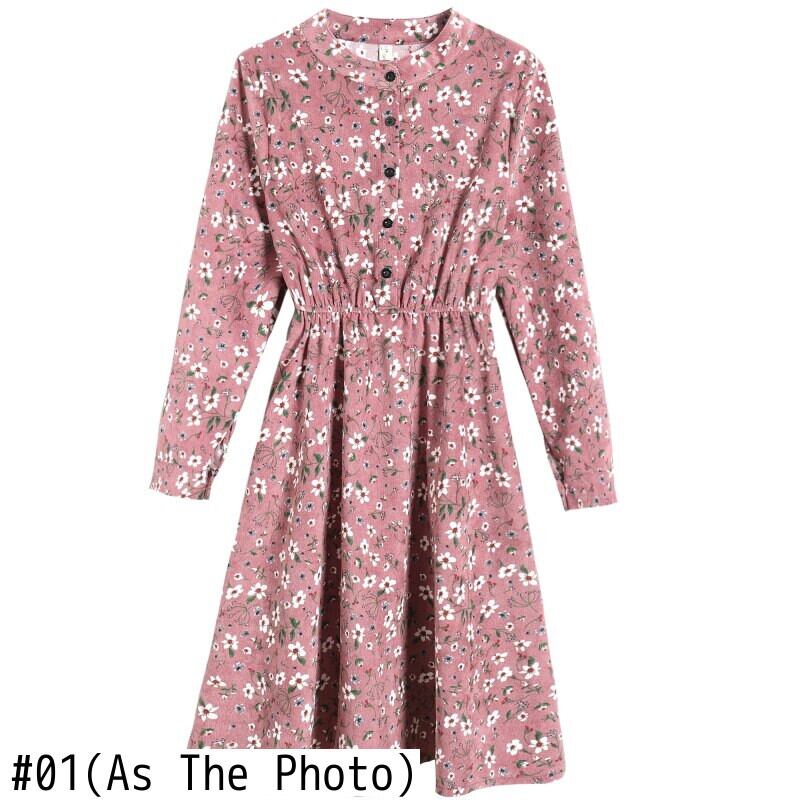 送料無料୨♥୧ 森レディースオータムフローラルドレス スタンドカラーカラールーズミディ可愛いコーデュロイフェミニーズベスティドス AOS62916695674
