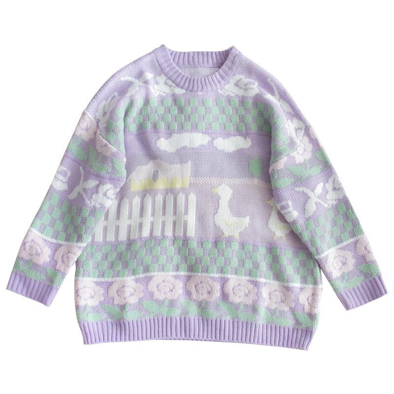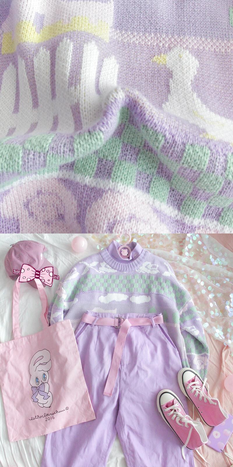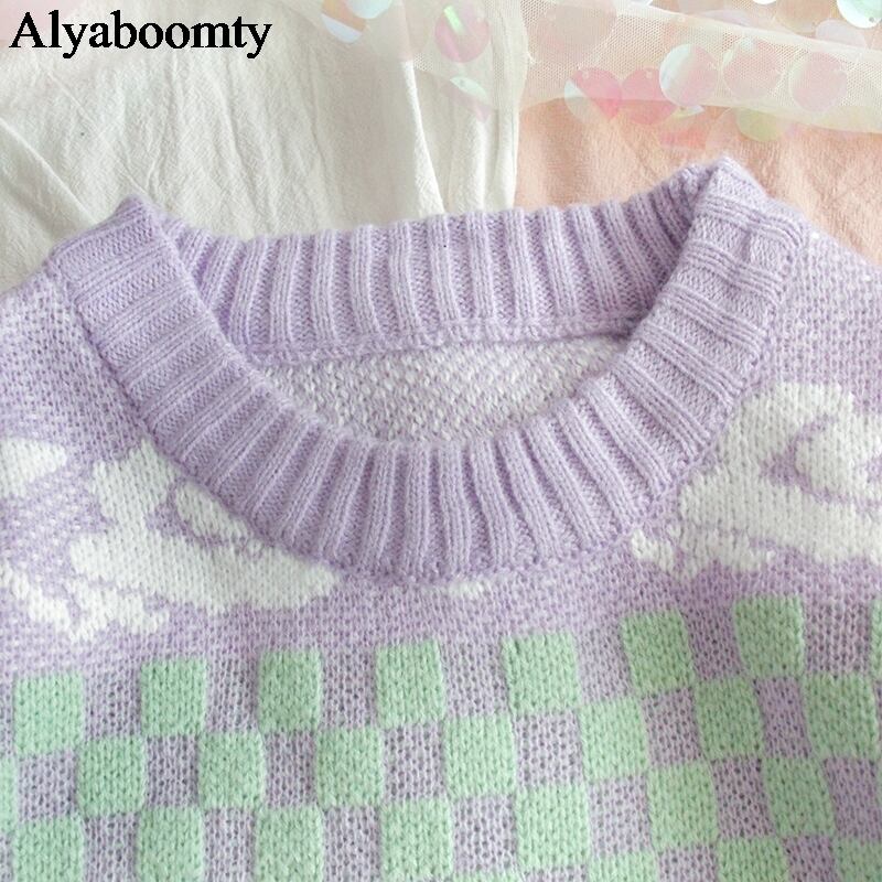 送料無料୨♥୧ ese森オータムウィンターレディースセーター コントラストカラー漫画ニットプルオーバー 可愛いバギー甘い AOS49102333155