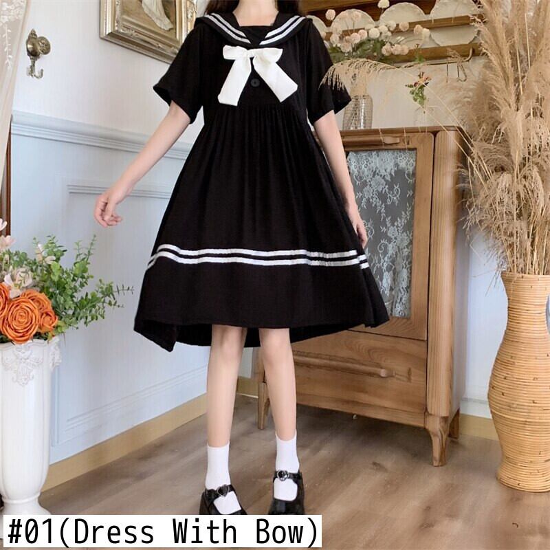 送料無料୨♥୧ ese原宿サマーレディースブラックドレス プレッピースタイル船乗りカラーリボン可愛い半袖スリーブ学生Aライン AOS26957238115