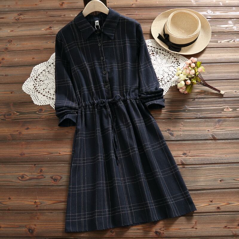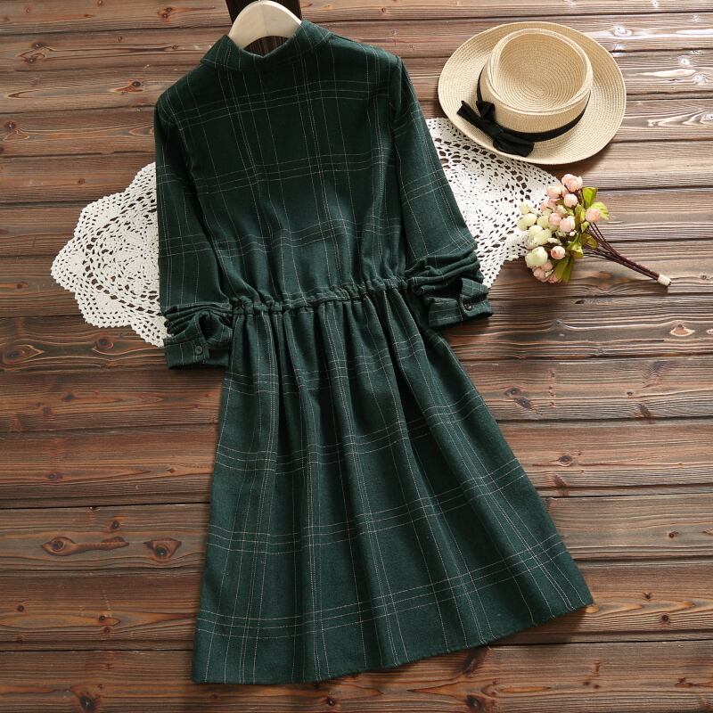 送料無料୨♥୧ 森オータムスプリングレディースヴィンテージドレス 断るカラー格子柄余暇ベスティドス長袖スリーブチュニックローブ AOS20125974315