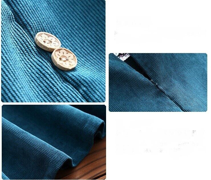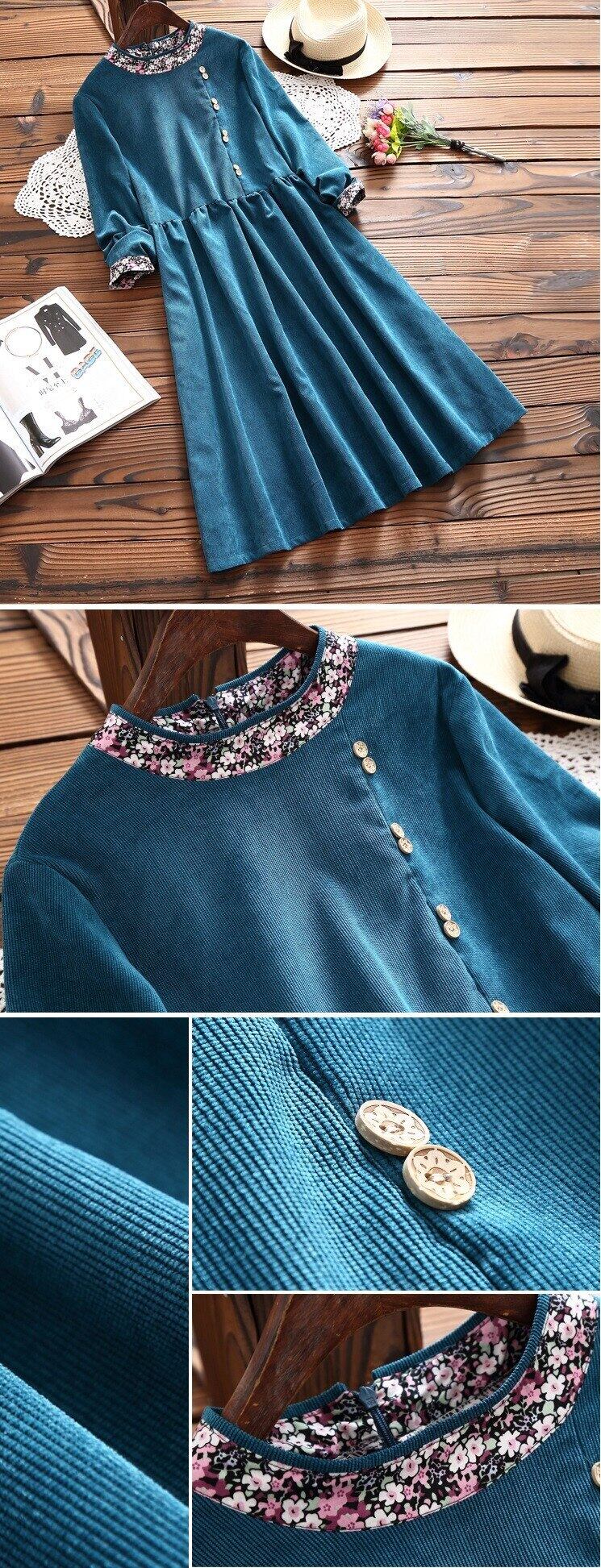 送料無料୨♥୧ 森オータムスプリングレディースドレス ラウンドネックフローラルヴィンテージコーデュロイグリーン長袖スリーブベスティドスフェミニーズ AOS9078270984