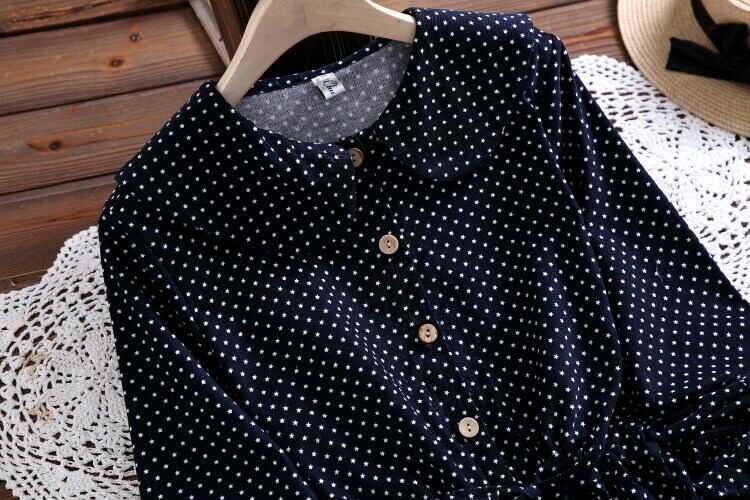 送料無料୨♥୧ ese森可愛いレディースドレス ピーターパンカラーレッドネイビーブルー出演者プリント柄ベスティドススプリングオータムコーデュロイシック AOS56709134476
