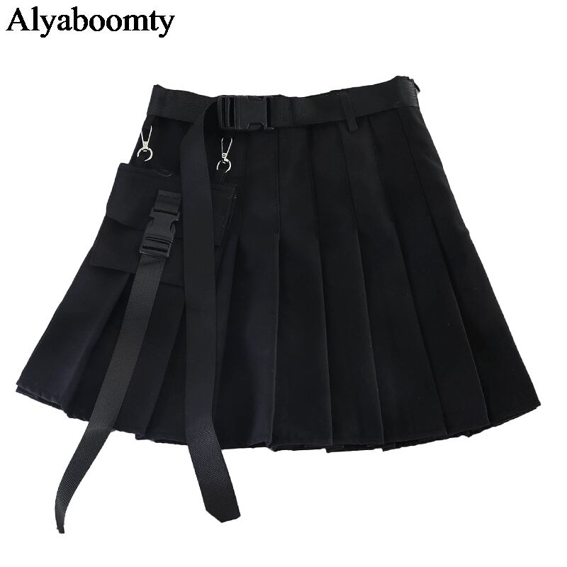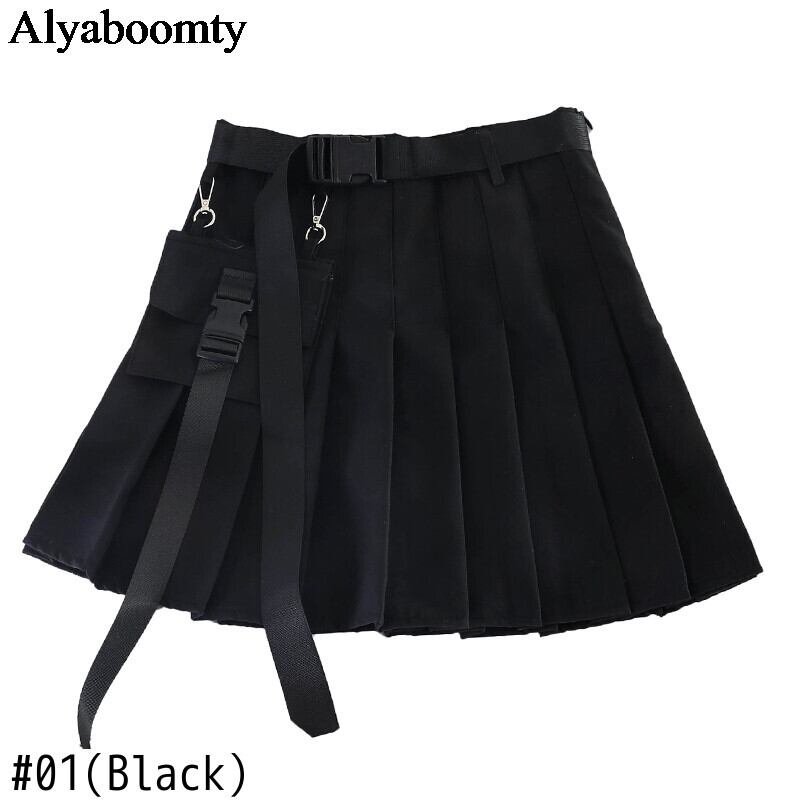 送料無料୨♥୧ 2021ese原宿レディースストリートウェアスカート ゴシックパンクスタイルウェストサイアスブラックグレーミニプリーツとベルト AOS60049882342