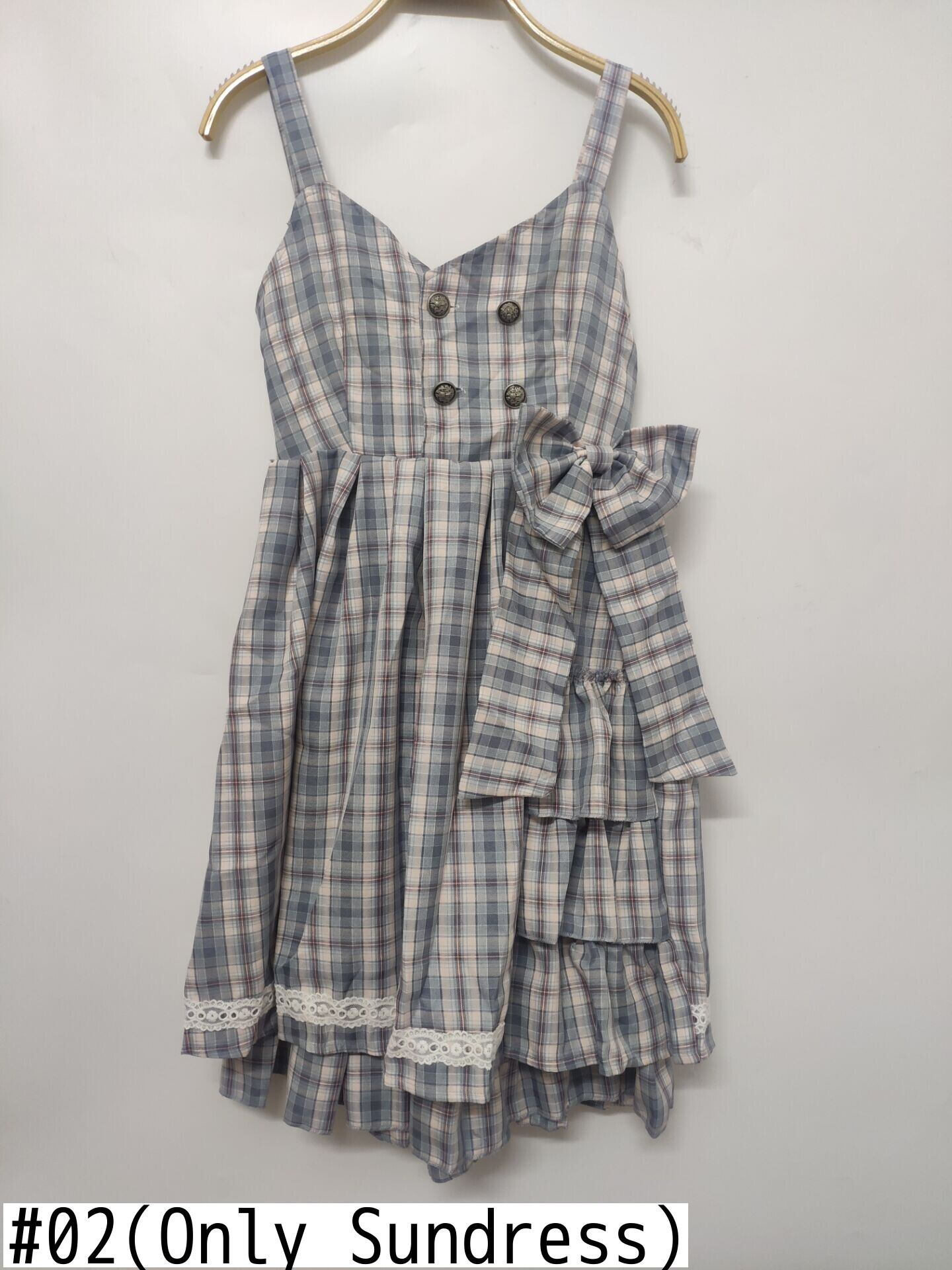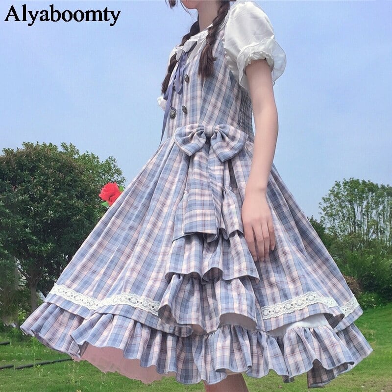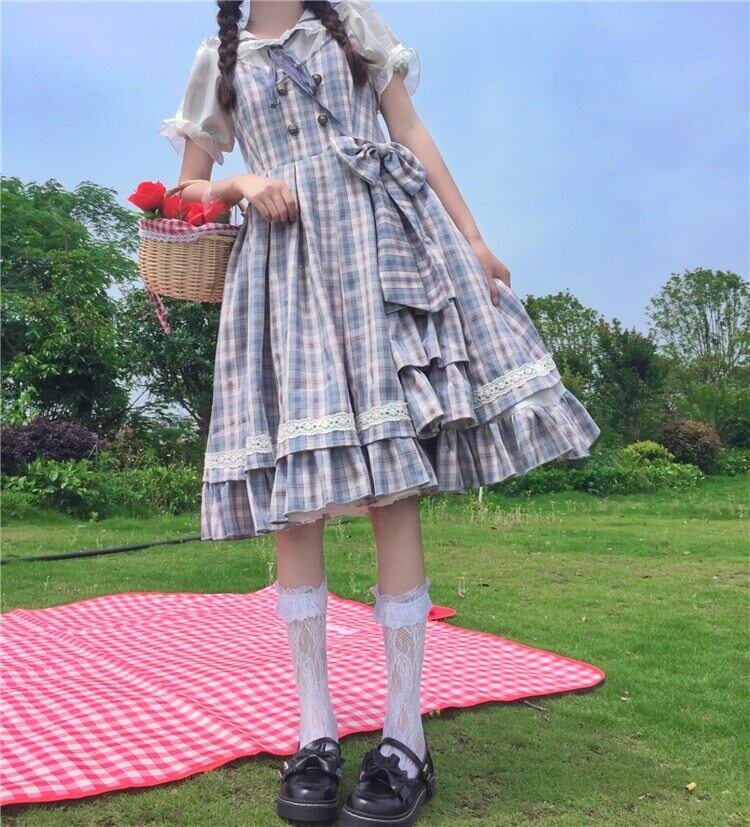 送料無料୨♥୧ eseロリータスタイルレディースドレス 格子柄リボンレースフリルノースリーブ可愛い甘いのjskドレス ワンピース AOS85952992374