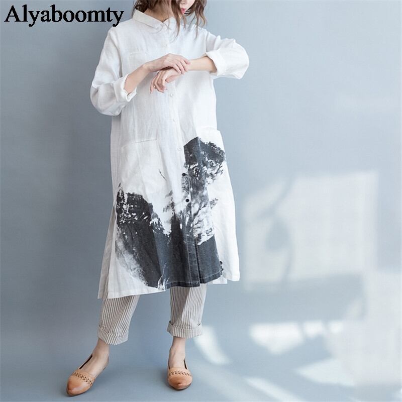 送料無料୨♥୧ スタイルオータムスプリングレディースシャツ ドレス 断るカラーヴィンテージプリント柄特大サイズコットンプラスルーズブラウス AOS68833849812