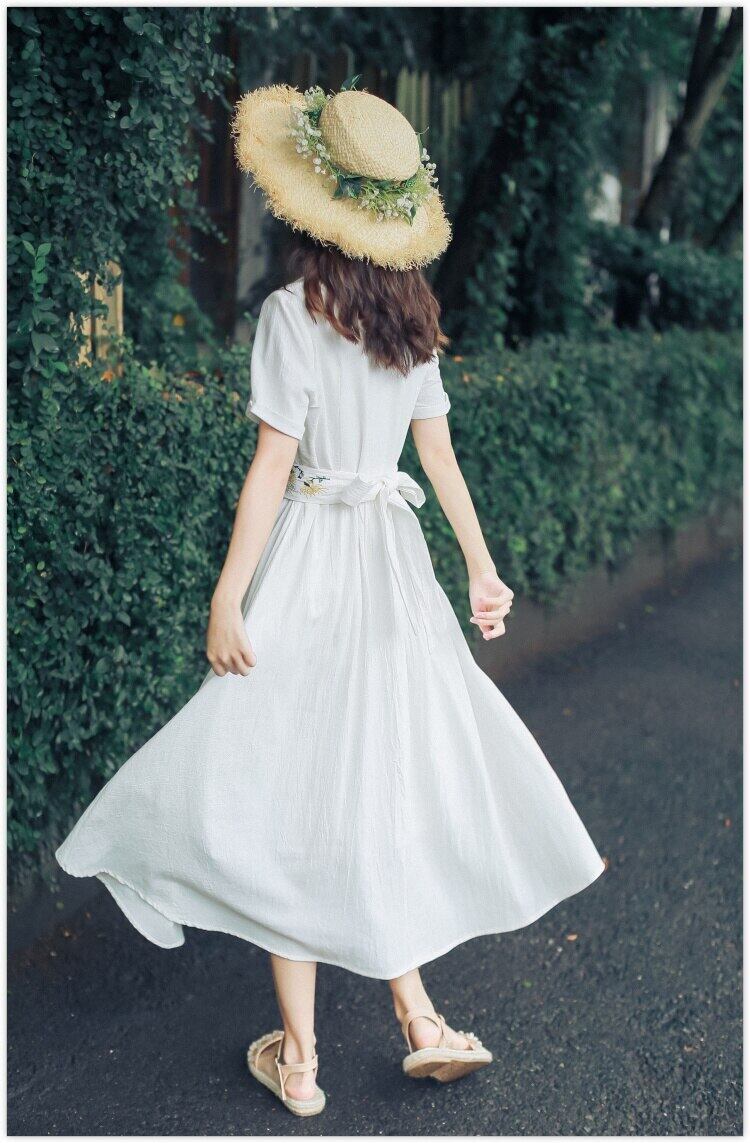 送料無料୨♥୧ 2021サマー森レディースロングホワイトドレス ピーターパンカラーコットンヴィンテージフローラル刺繍シックドレス ワンピース AOS98257910172