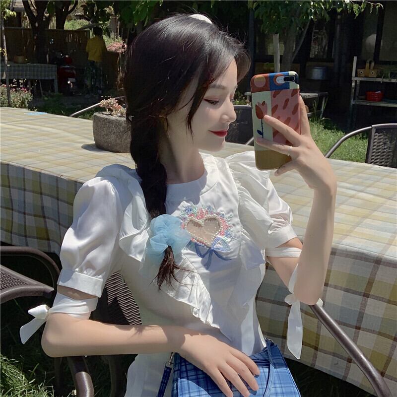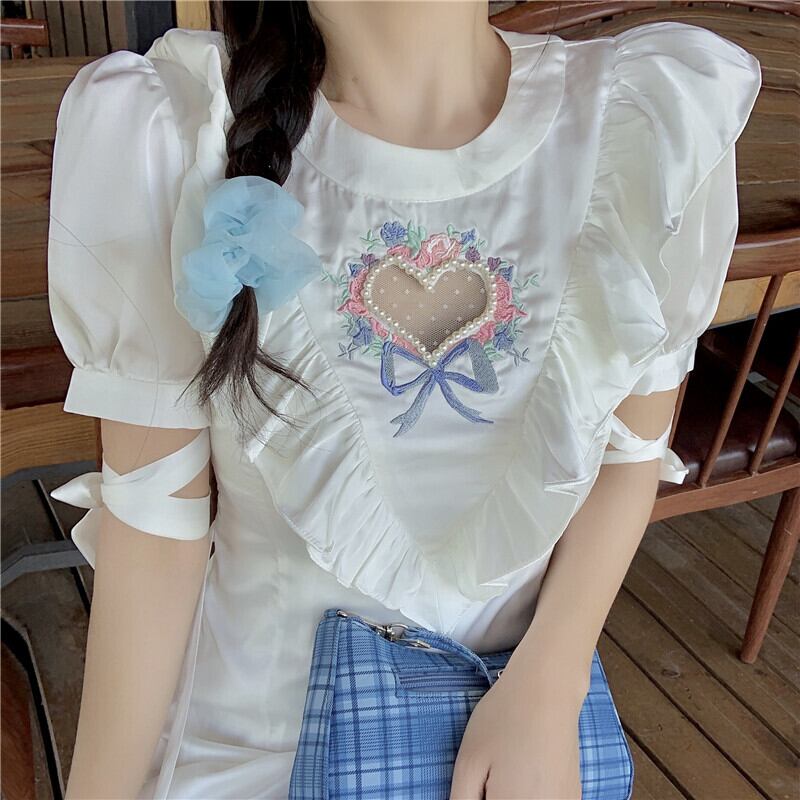 送料無料୨♥୧ 2021eseサマーレディーススリムホワイトドレス ホローでるハート刺繍フローラルビーズ可愛いロリータの AOS58828881479