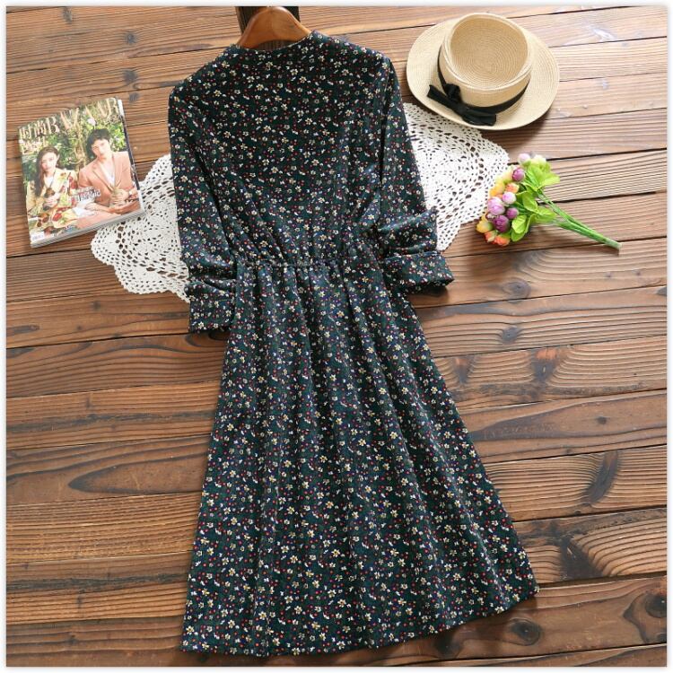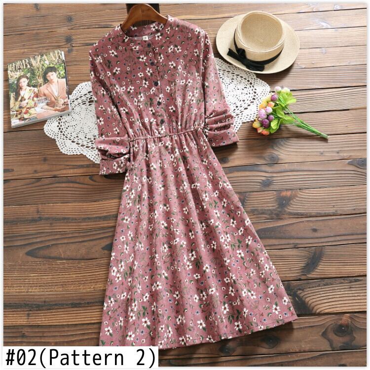 送料無料୨♥୧ 森オータムスプリングレディースミディドレス スタンドカラーカラーフローラルプリントヴィンテージシックコーデュオリー AOS14740326007