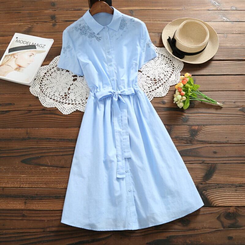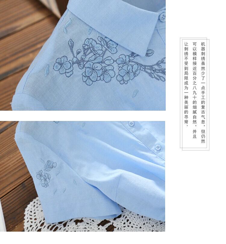 送料無料୨♥୧ 森サマーレディース刺繍ドレス ブルーピンクコットンフローラルシャツ AOS85448514920