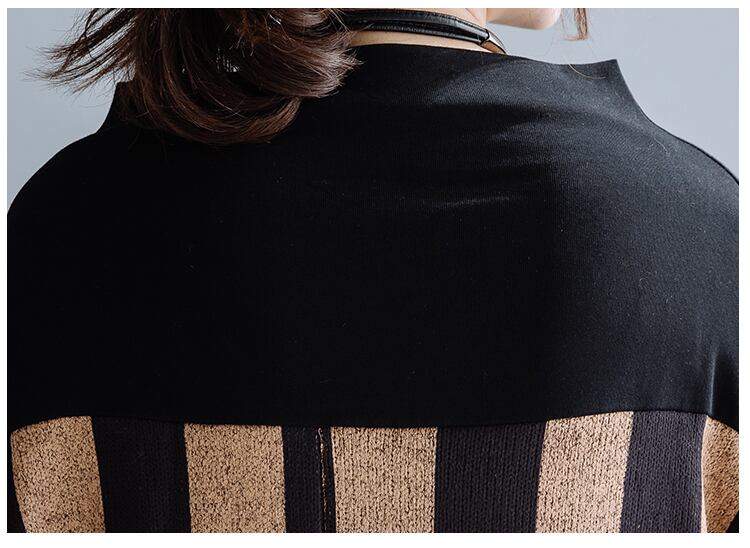 送料無料୨♥୧ シックオータムウィンターレディースマキシドレス タートルネックストライプ特大サイズルーズベスティドスロングヴィンテージプラスドレス ワンピース AOS86309535019