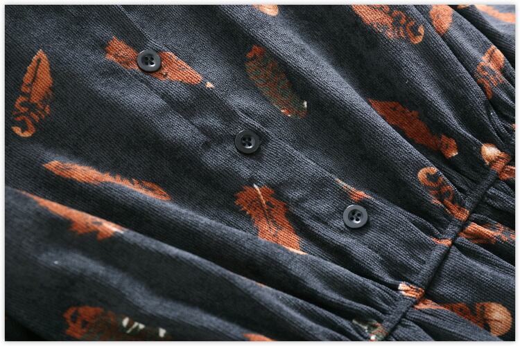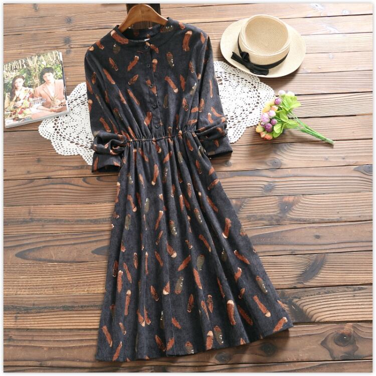 送料無料୨♥୧ 森スプリング秋レディースヴィンテージドレス スタンドカラーカラールーズローブスタンダードコーデュロイミディレディ全試合 AOS60135864062