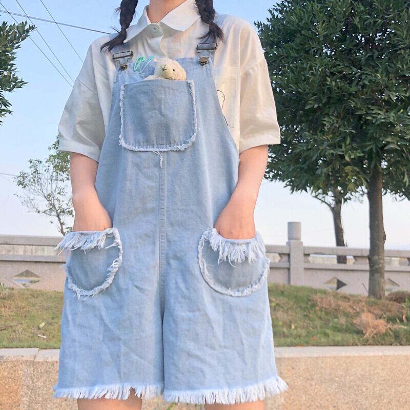 送料無料୨♥୧ 2021eseプレッピースタイルサマーレディースロンパース オールインワン ブルーデニム可愛いtelワイドレッグオーバーオール AOS5827984149