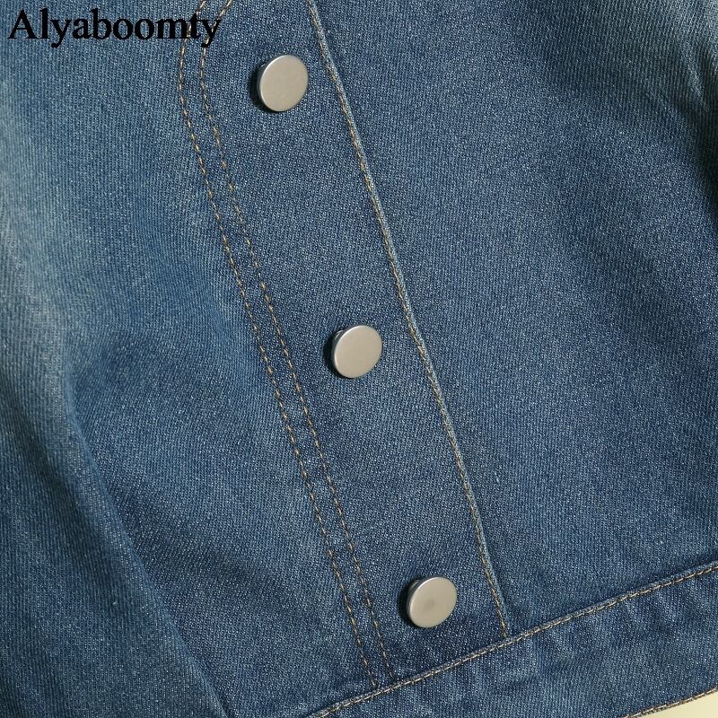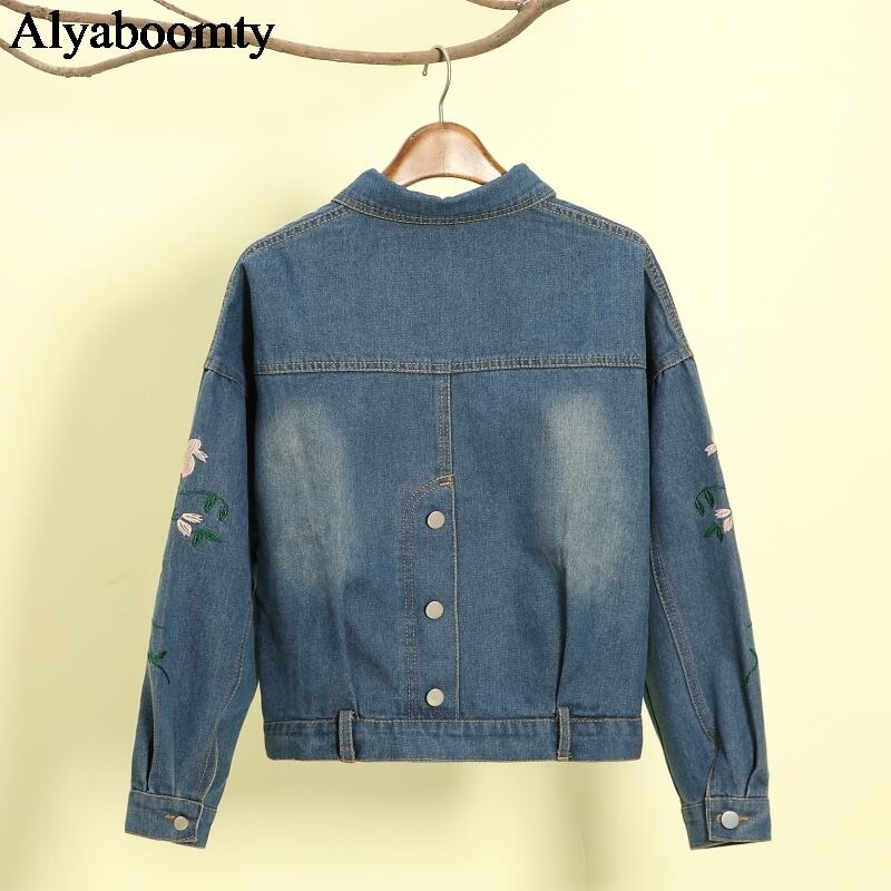 送料無料୨♥୧ 2021スプリングオータムレディースショートコート 断るカラー洗浄済みヴィンテージデニムジャケット フローラル刺繍 AOS21393425848