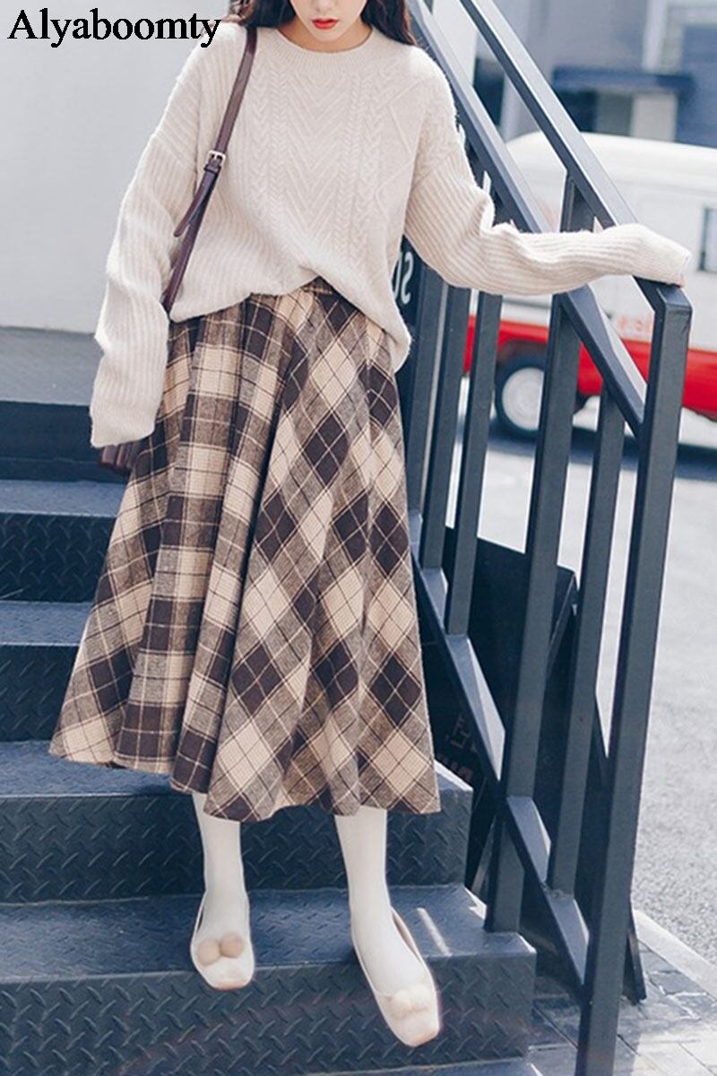 送料無料୨♥୧ ese森オータムウィンターレディース格子柄スカート ウェストヴィンテージジュープ可愛いロリータ AOS54439919533