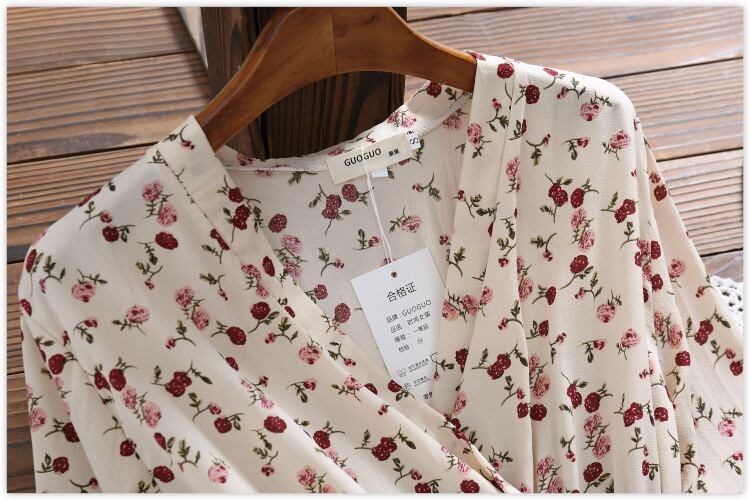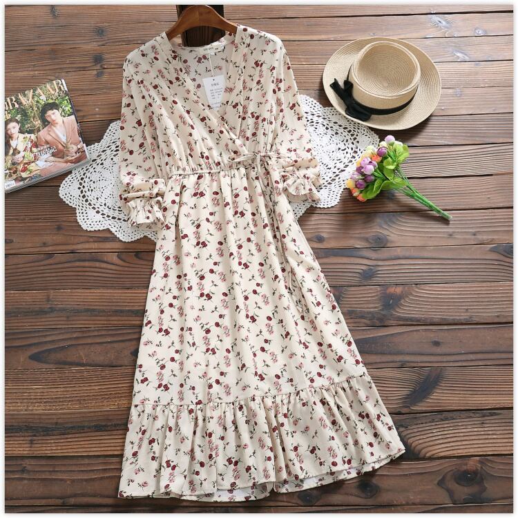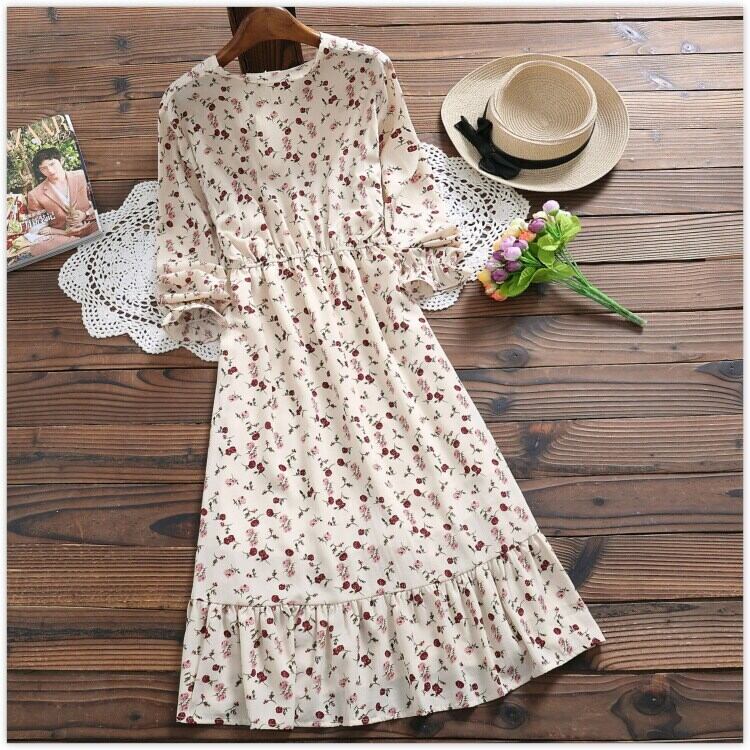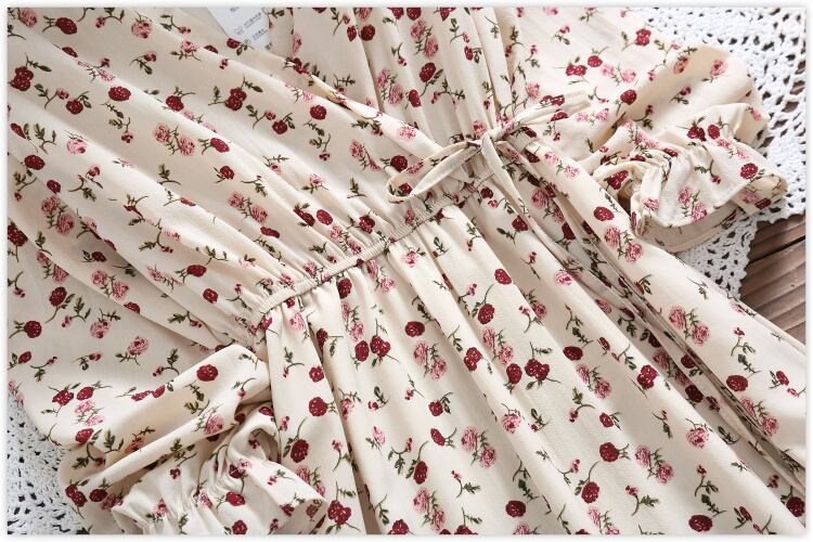 送料無料୨♥୧ 甘いスプリングオータムレディースドレス 草原シックフローラルプリント柄ゴージャスシフォン長袖スリーブフリル AOS62224666857