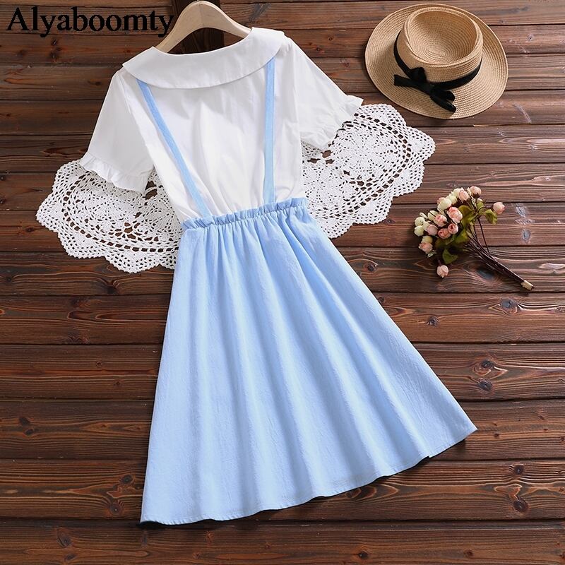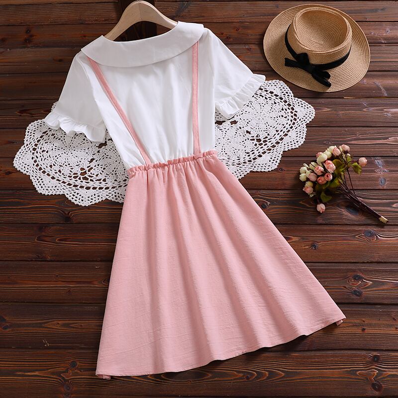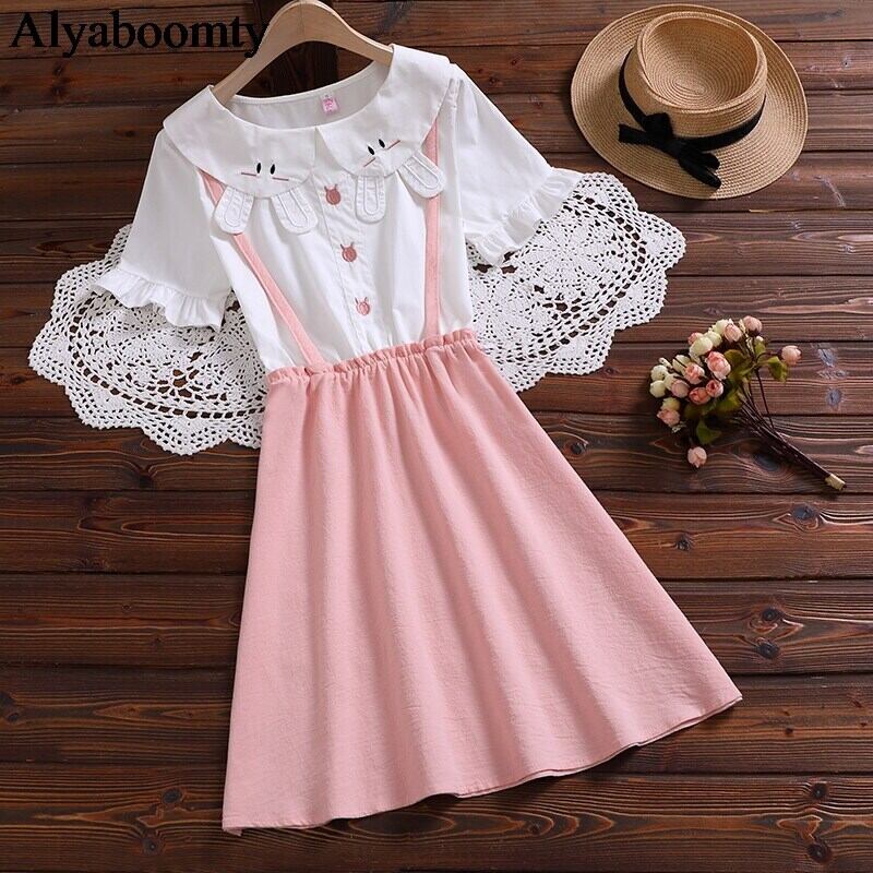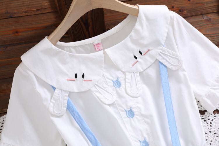 送料無料୨♥୧ 2021サマープレッピースタイルレディースミニドレス ピーターパンカラー刺繍バニーピンクブルー漫画甘い AOS24698581719